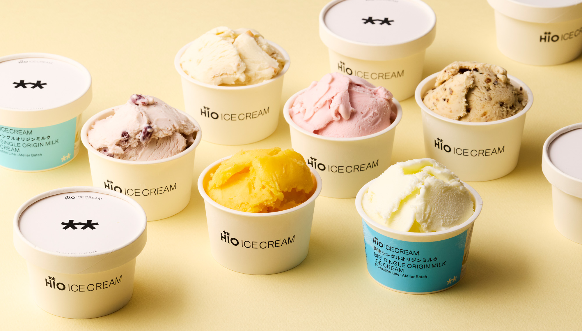東京・自由が丘のクラフトアイスクリーム工房 「Atelier」で製造したアイスクリームを スクープ(季節のフレーバー含め常時8種類)、お持ち帰りのカップをご用意しております。店内ベンチをご利用いただけます。